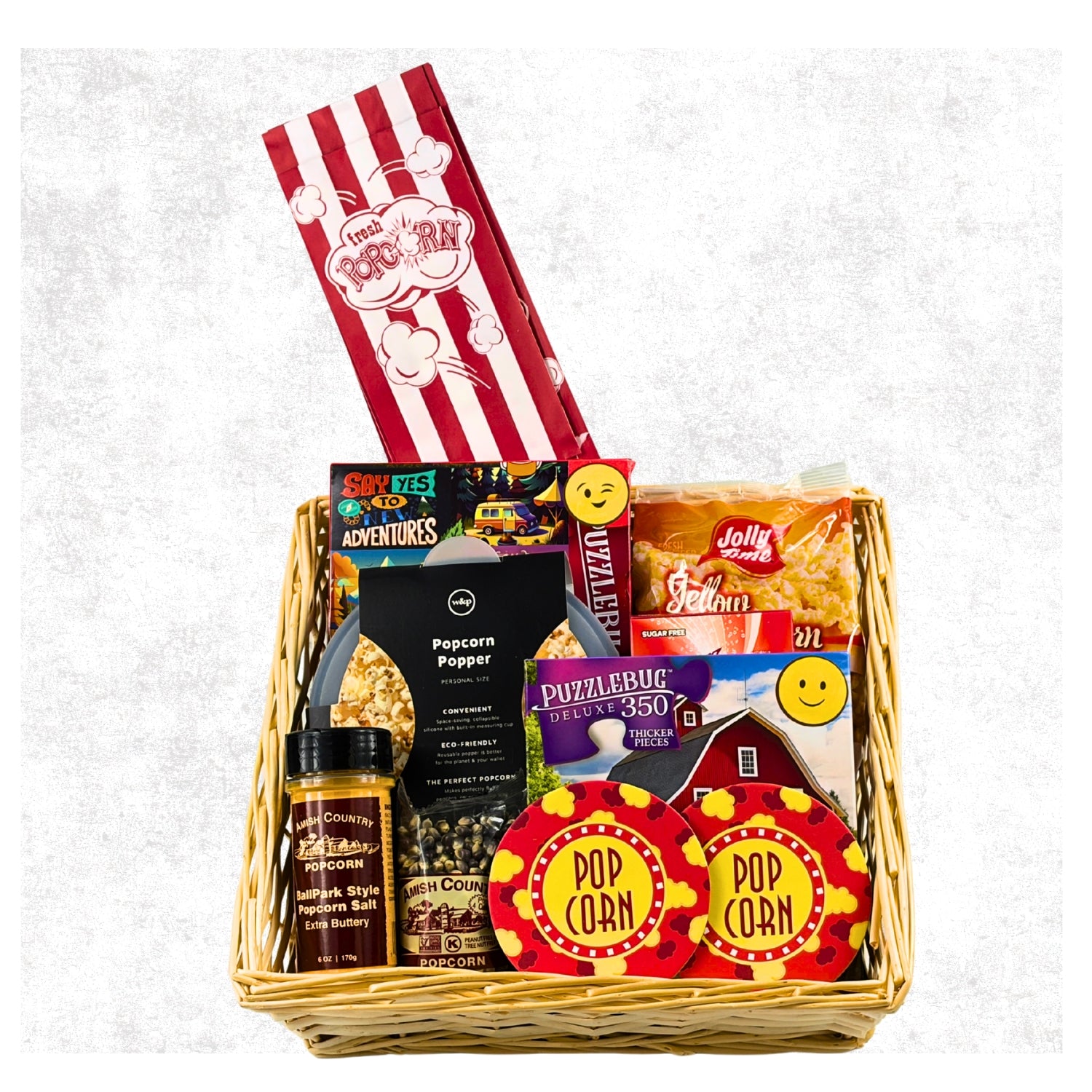 Get ready to pop, munch, and puzzle your way through the ultimate family night! This delightful bundle includes a microwave corn popper for fresh, theater-quality popcorn in minutes, plus gourmet seasoning blends—think buttery salt and beyond—to customize every handful. Two puzzles round out the package, offering hours of brain-teasing fun that'll have everyone gathered around the table. It's the perfect recipe for laughter, and friendly competition.